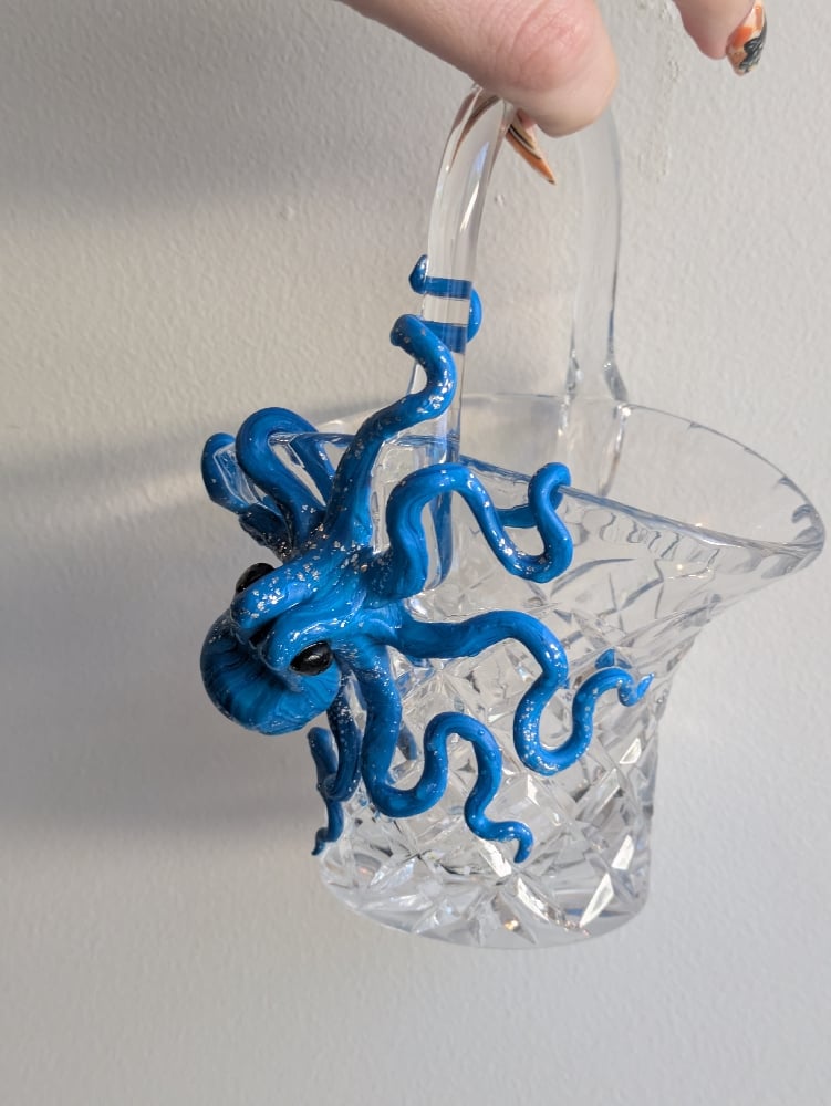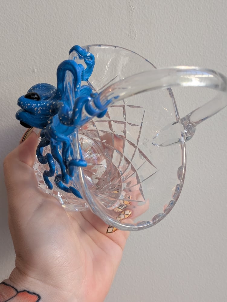 Pretty Beatrice sits on a crystal basket, perfect for storing pens, being used as a vase or even as a propagation station!