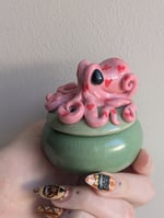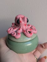 Quincy sits on a very cute little ceramic box, perfect for holding rings, coins or other small trinkets!